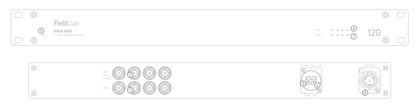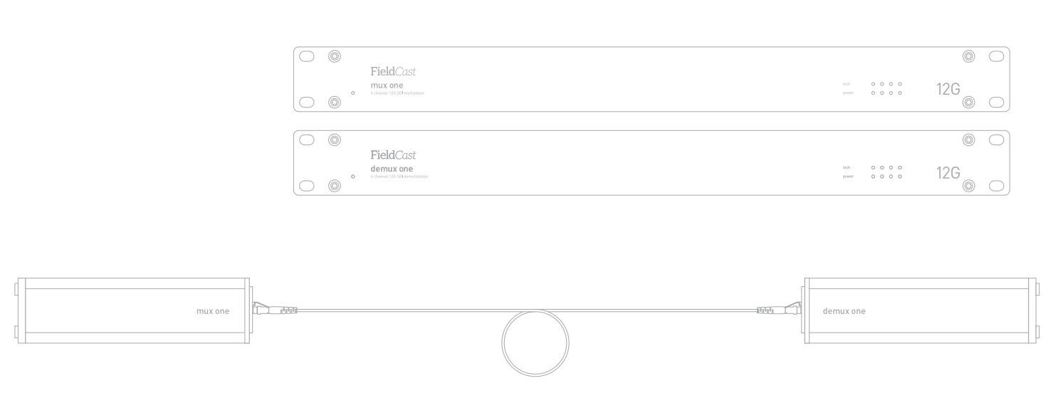 Si su infraestructura solo admiteuna única fibra simple (simplex), el Mux/Demux One le permitirá gestionar fácilmente toda la transmisión. O si desea tender el menor número posible de cables en eventos en directo, este dispositivo le permitirámultiplexar hasta cuatro canales de vídeo y transmitir todos los datos del punto A al punto B medianteuna sola fibra. Todas las señales de vídeo de 12G conservan la integridad total de los datos: lo que entra, salesin cambios.