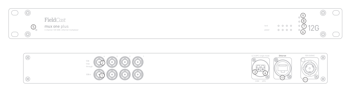 FieldCast Mux/Demux One 12G Plus (4x SDI in/out + Ethernet over one fiber strand)