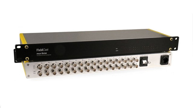 El Mux/Demux Three 12Gle permitetransmitir dieciséis canales independientes de vídeo12G SDI a través deuna solafibra óptica. Se esperaque esté disponiblea finalesde junio o principios de julio de 2025.