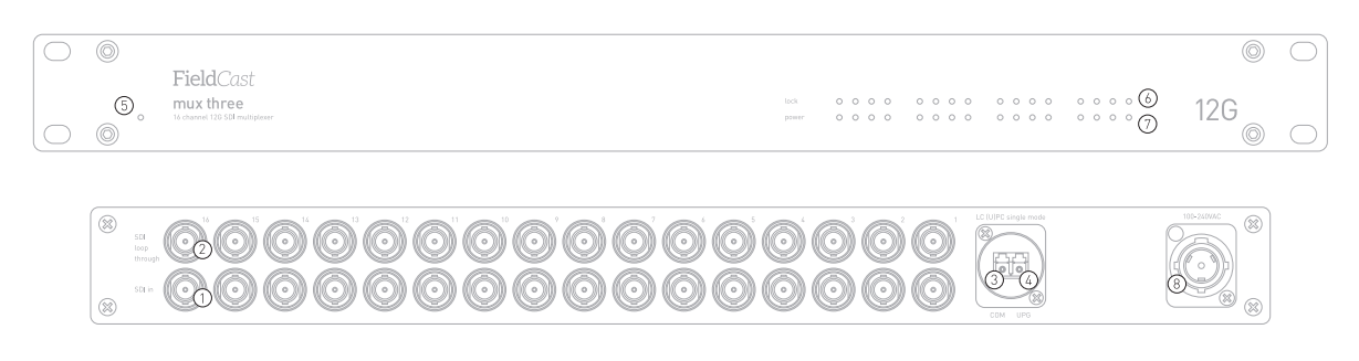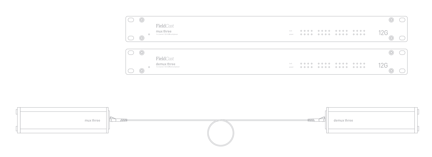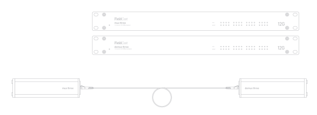 Si tu infraestructura solo admiteuna única fibra simple (simplex), el Mux/Demux Three Plus te permitirá gestionar fácilmente toda la transmisión. O si deseas tenderel menor número posible de cables en eventos en directo, este dispositivo te permitirámultiplexar hasta dieciséis canales de vídeoy transmitir todos los datos del punto A al punto B utilizandouna sola fibra. Todas las señales de vídeo 12G conservan la integridad total de los datos: lo que entra, salesin cambios.