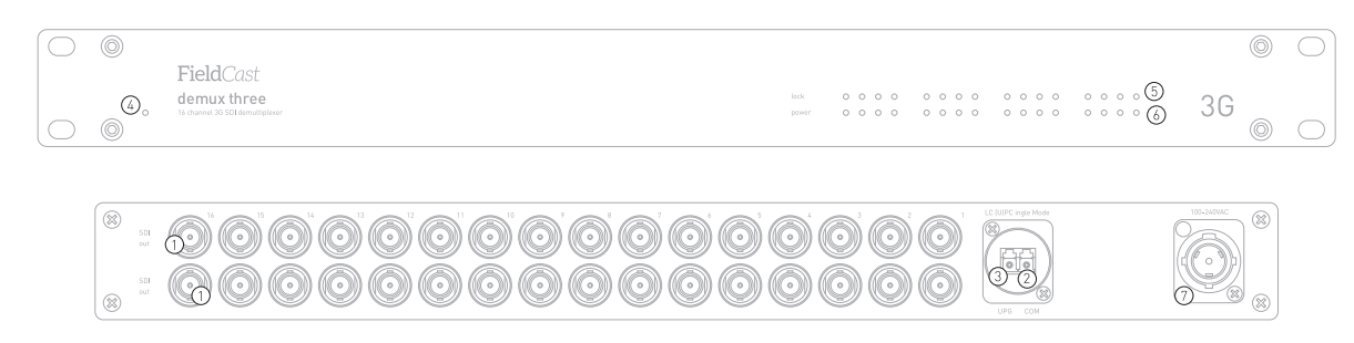 - Demultiplexor: 1 entrada óptica → 16 canales de salida SDI