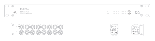 - 8 canales de entrada SDI 12G (11,88 Gb/s), cada uno con salida SDI tipo loopthrough