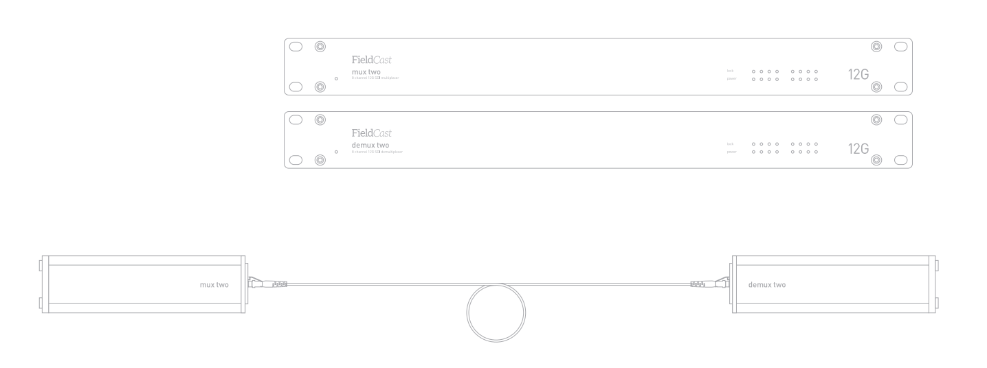 Si su infraestructura solo admiteuna única fibra simple (simplex), el Mux/Demux Two le permitirá gestionar fácilmente toda la transmisión. O si desea tender el menor número posible de cables en eventos en directo, este dispositivo le permitirá multiplexar hasta ocho canales de vídeo y transmitir todos los datos del punto A al punto B mediante una sola fibra. Todas las señales de vídeo de 12G conservan la integridad total de los datos: lo que entra, salesin cambios.