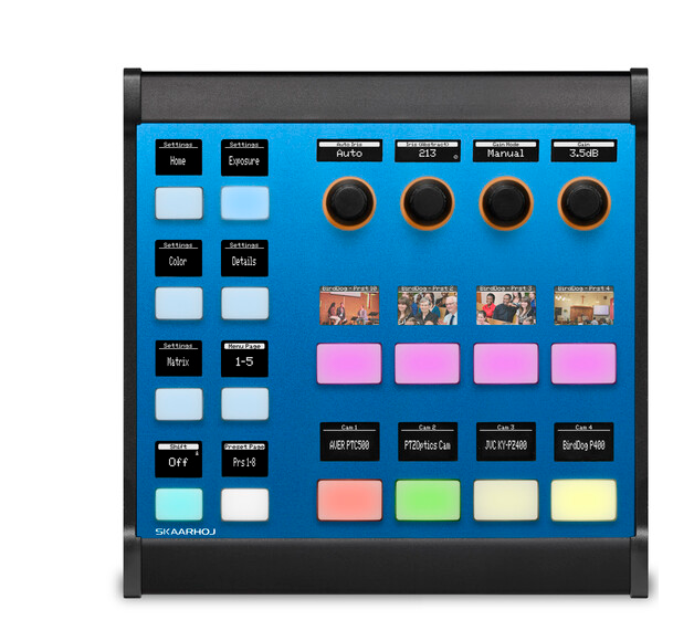 El SKAARHOJ Frame Shot Plus con Blue Pill Inside (azul) es un controlador de cámara PTZ compacto pero potente, diseñado para entornos de retransmisión, estudio y producción en directo. Gracias a la arquitectura Blue Pill Inside de SKAARHOJ, integra el procesamiento directamente en la unidad, lo que permite un funcionamiento autónomo y una conectividad perfecta con otros dispositivos SKAARHOJ, incluido el controlador PTZ View, para ampliar los flujos de trabajo de control.