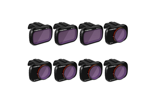Juego de ocho filtros Freewell para el dron DJI Mavic 2 Pro. El juego incluye filtros