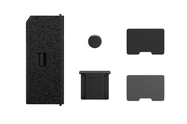 El kit incluye una tapa para el terminal de sincronización, una tapa para la zapata, tapas para los conectores de la empuñadura de batería vertical en colores negro y plateado, y una tapa de repuesto para la tarjeta de memoria. Estos componentes ayudan a proteger los puertos sensibles de la cámara contra el polvo, la suciedad y la humedad, al tiempo que mantienen el aspecto profesional de la cámara.