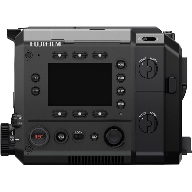 Para satisfacer las necesidades prácticas del entorno de rodaje, la GFX ETERNA 55 está equipada con monitores LCD independientes de 3,0 pulgadas a ambos lados del cuerpo. Estas pantallas proporcionan información en tiempo real, como el estado de la grabación, la exposición, los niveles de audio y los formatos de grabación, lo que permite tanto al operador como al asistente supervisar simultáneamente los datos importantes, lo que resulta ideal para la colaboración en el set.