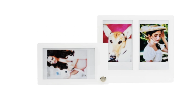 Los tres marcos están firmemente unidos mediante un tornillo metálico, creando así una estructura combinada que se mantiene estable sobre superficies planas. Las fotografías se pueden insertar fácilmente en el marco con solo deslizarlas en su sitio, lo que permite actualizar o reorganizar tus imágenes favoritas de forma rápida y cómoda. Este marco también es un regalo ideal para amigos o familiares a los que les gusta capturar momentos con cámaras Instax.