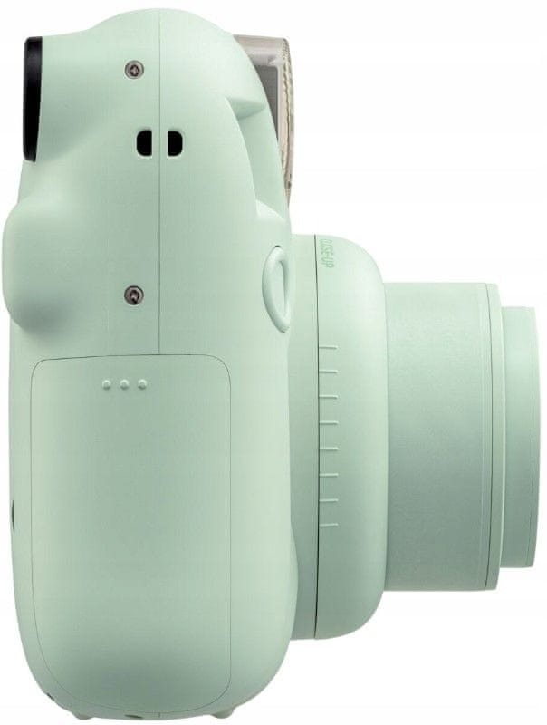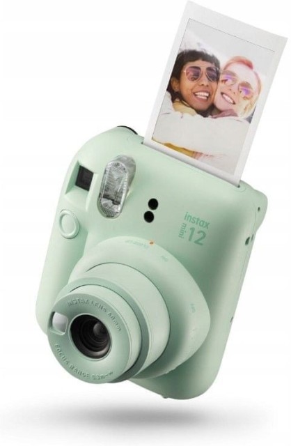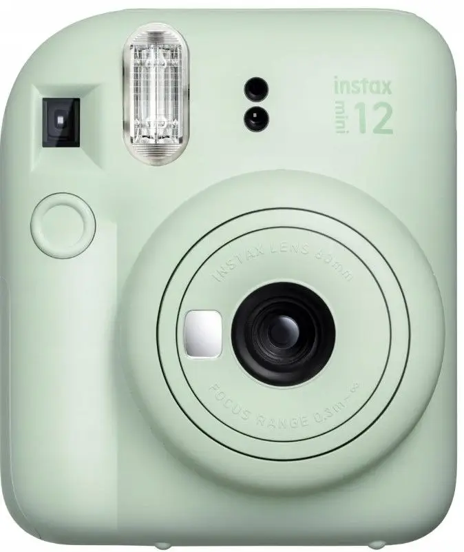 La INSTAX mini 12 es la sucesora del modelo mini 11, con unas curvas y contornos ligeramente modificados en el cuerpo de la cámara, lo que da como resultado unas líneas más suaves y fluidas. Entre los principales cambios se encuentra la función de «encendido» de la cámara, en la que el botón original ha sido sustituido por un anillo alrededor del objetivo que, en una posición, enciende la cámara y, en otra, la configura en modo autorretrato (selfie). Entre las nuevas funciones se incluyen la «corrección de paralaje» y el «control automático del flash».