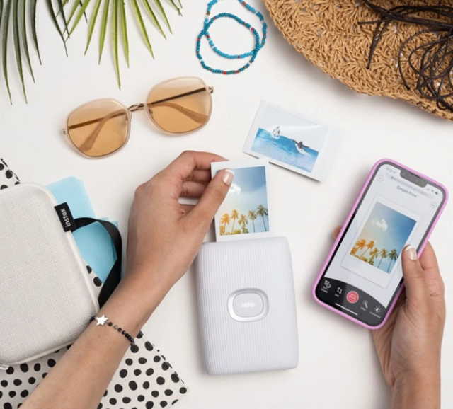 Con la aplicación Mini Link, puedes añadir más de 1200 pegatinas, marcos personalizados, bocetos dibujados a mano, texto y filtros antes de imprimir. También puedes combinar hasta ocho imágenes en collages, extraer los momentos más interesantes de los vídeos e incluso jugar a juegos interactivos, como Match Test, para puntuar las fotos de forma divertida. La función única de dibujo en realidad aumentada instaxAiR™ te permite dibujar en el aire o en la pantalla y ver tus creaciones impresas directamente en la foto.