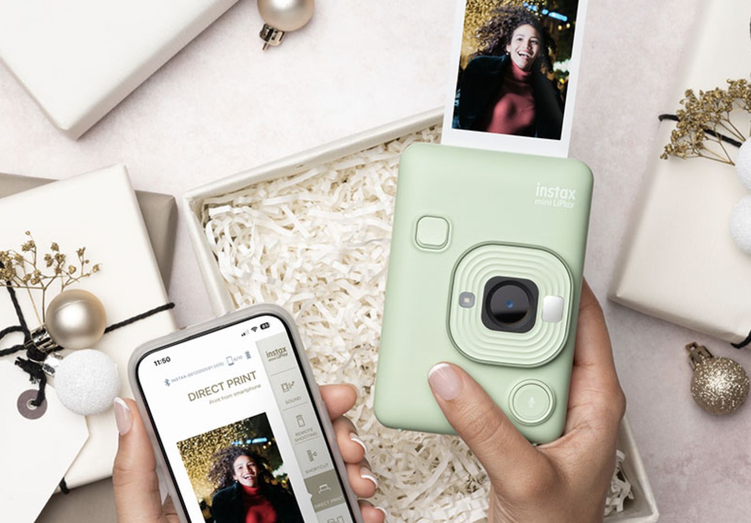 La Instax mini LiPlay combina un diseño compacto con funciones perfectamente optimizadas. Esta cámara instantánea híbrida y impresora para smartphones, todo en uno, ofrece todo lo que necesitas para imprimir fotos desde tu teléfono. ¡Captura tus momentos irrepetibles con tu familia y amigos con la Instax mini LiPlay!