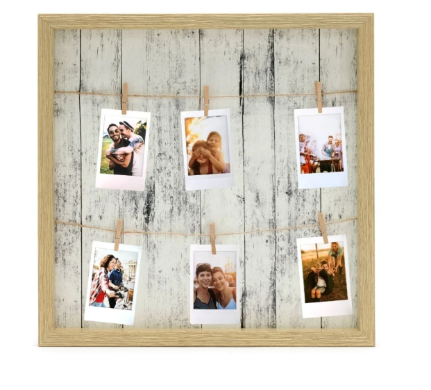 El marco es ideal para exhibir recuerdos instantáneos y ofrece una forma flexible de cambiar o reorganizar las fotos en cualquier momento. Simplemente fija tus fotos con las clavijas incluidas y expónlas en la pared o en una estantería para que tus momentos especiales estén siempre a la vista.