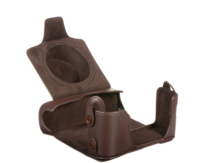 La funda de cuero FUJIFILM LC-X100F (marrón) es una funda de cuero de alta calidad diseñada para la cámara digital X100F. Ofrece protección contra pequeños golpes y arañazos, mejora el agarre y permite acceder fácilmente a la batería y a la tarjeta de memoria sin necesidad de quitar la funda.