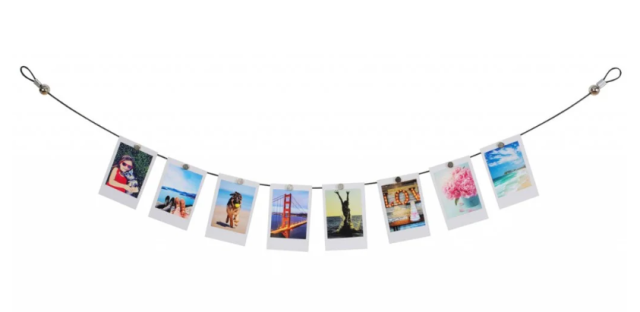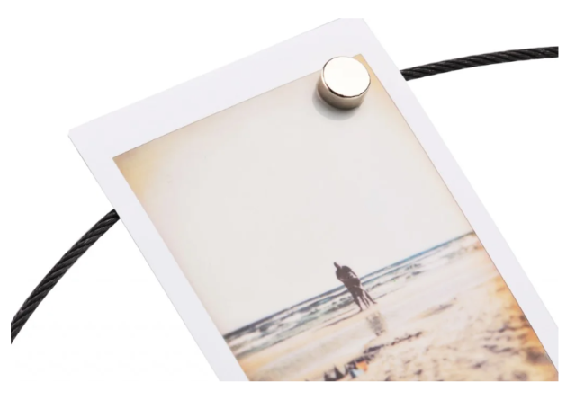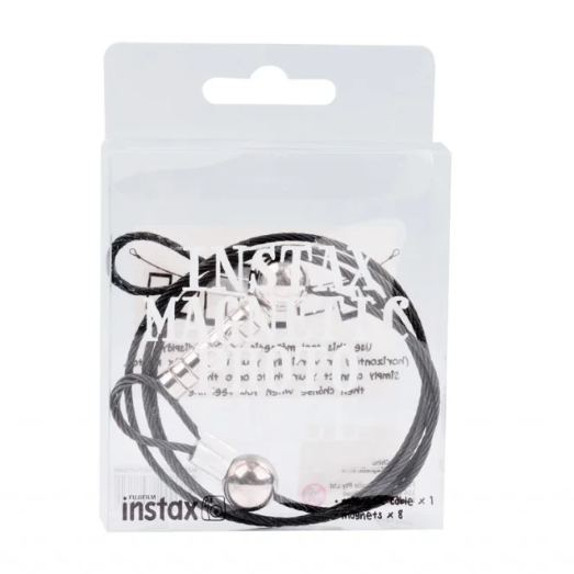 El cable magnético Fujifilm INSTAX es un accesorio elegante y práctico para exponer tus fotos favoritas. Gracias a sus potentes imanes, este cable colgante de 800 mm de longitud te permite exponer varias fotos en cualquier formato, por lo que es ideal para el hogar, la oficina o espacios creativos.