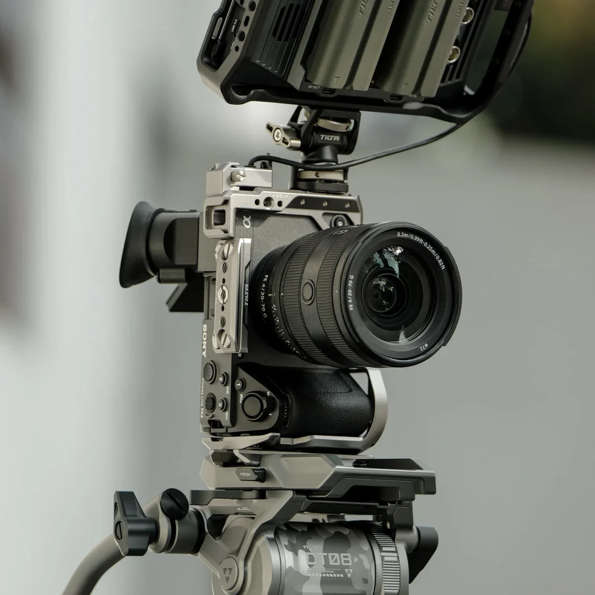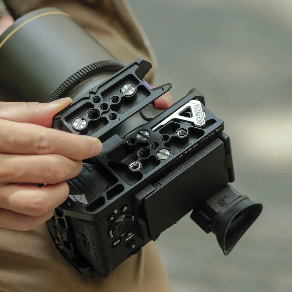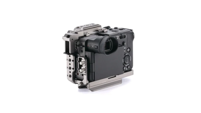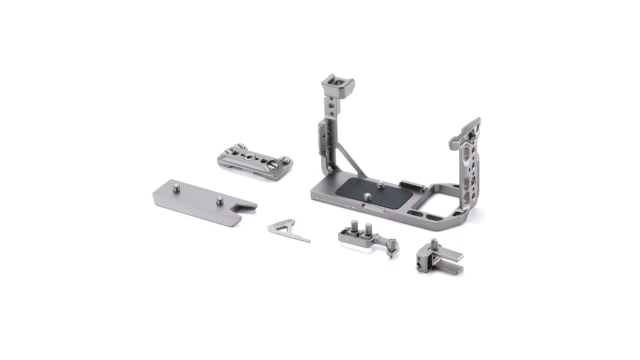 La jaula está completamente moldeada para permitir un libre acceso a todos los puertos, la batería, la tarjeta de memoria, la pantalla y el EVF. Permite un fácil control de todas las funciones de la cámara incluso cuando está montada en la jaula. La estructura está diseñada para no limitar el montaje de accesorios habituales, como micrófonos, monitores o asas superiores.