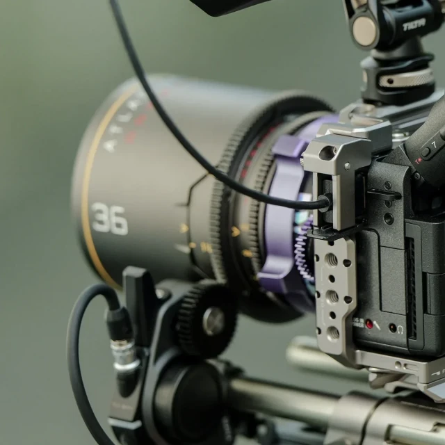 La jaula incluye dos abrazaderas para cables con tornillo de cabeza, que garantizan una sujeción firme de los cables HDMI y USB-C. De este modo se minimiza el riesgo de dañar los conectores durante la grabación y se garantiza un funcionamiento seguro incluso cuando la cámara está en movimiento.