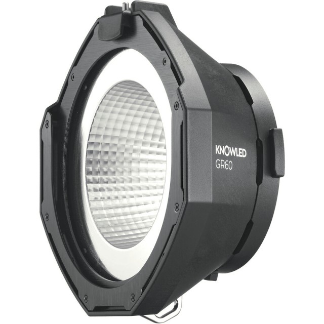 El reflector Godox Knowled GR60 de 60° está diseñado para mejorar el rendimiento de los sistemas de iluminación MG1200BI, MG2400BI, MG1200R y MG2400R, ya que ofrece una configuración precisa del haz de luz con una dispersión mínima. Gracias a su amplio ángulo de dispersión de 60°, es ideal para iluminar de manera uniforme grandes escenarios, espacios arquitectónicos u objetos en grupo, manteniendo la dirección y la claridad. Gracias a su interior plateado altamente reflectante, el GR60 garantiza un rendimiento lumínico eficaz y una caída de intensidad natural. El robusto cierre giratorio permite una fijación rápida y segura a dispositivos compatibles, lo que lo convierte en una herramienta fiable para la producción profesional de cine, televisión y publicidad. El reflector está diseñado exclusivamente como accesorio para la modelación del haz y no admite la fijación de rejillas, lo que garantiza una solución sencilla pero eficaz para el control de la luz.