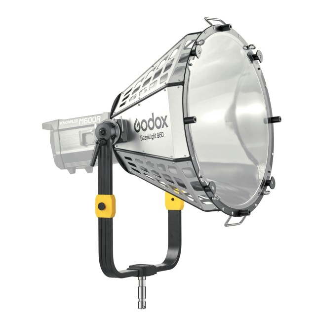 El Godox Knowled BeamLight B60 es un reflectorparalelo de calidad cinematográfica diseñado para los flashes KNOWLED con montura Bowens, como el M600R y el M600Bi Pro. Gracias a su avanzado sistema óptico, que genera un haz estrecho y casi paralelo con un ángulo de 5°, ofrece un alcance de luz excepcional, una caída de intensidad mínima y una salida potente, ideal para simular la luz solar natural a gran distancia.