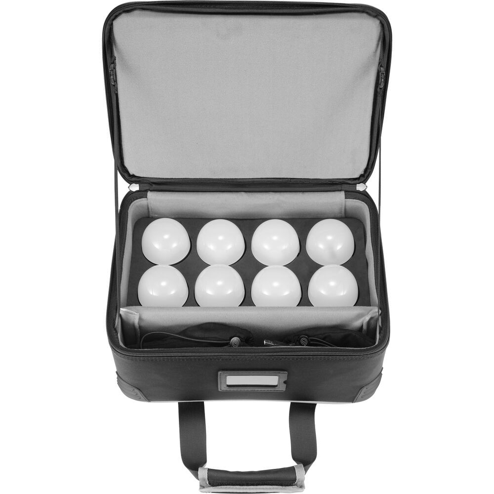 El estuche de carga y transporte incluido mantiene las ocho bombillas organizadas y protegidas, mientras que los ocho difusores redondos ayudan a suavizar y modelar la salida de luz. Las bombillas C10R con casquillo E26/E27 encajan en portalámparas estándar, lo que las convierte en una herramienta de iluminación versátil para usos prácticos, atrezo y diseños de iluminación creativos.