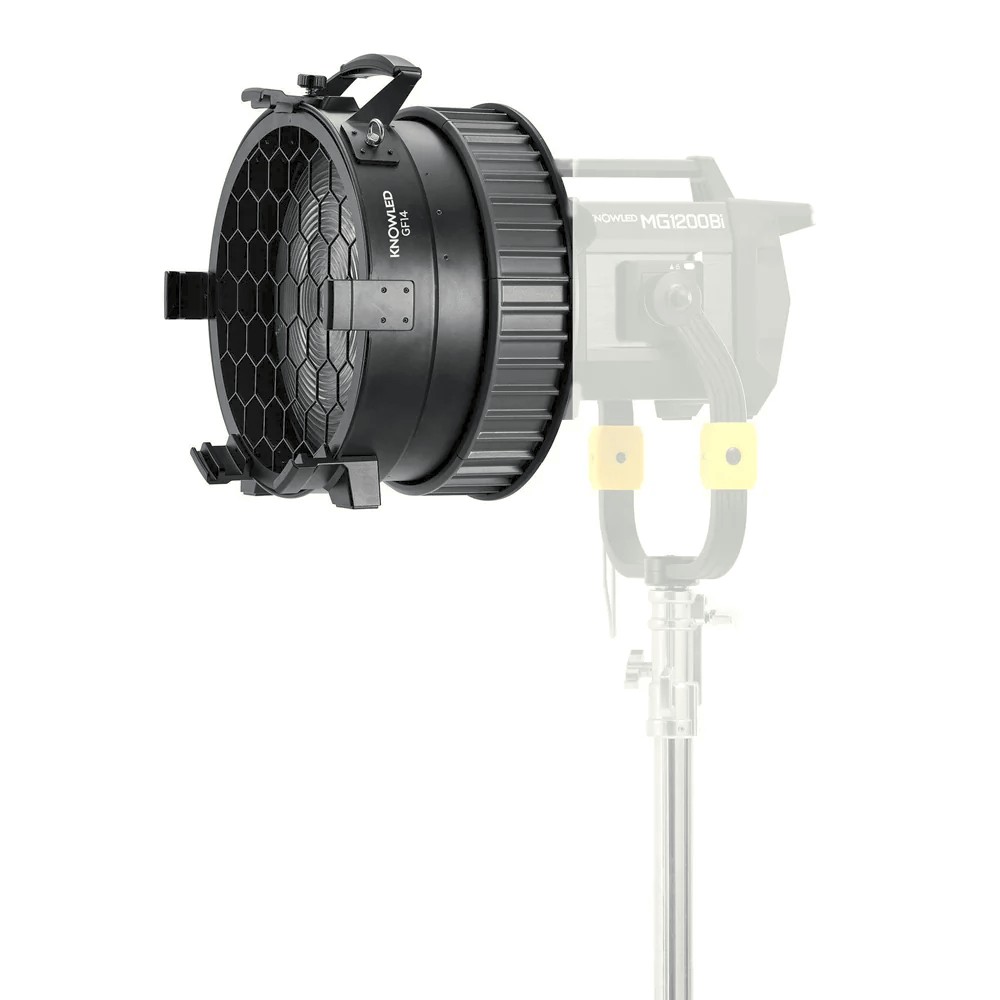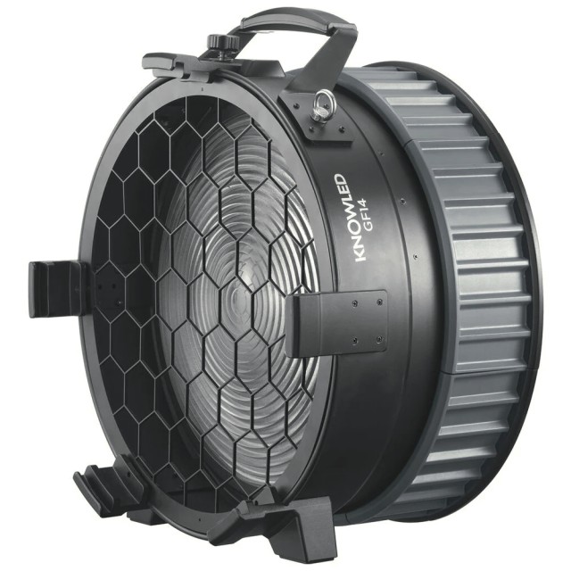 Gracias a su ángulo de haz ajustable de 15° a 45°, el GF14 permite un control preciso de la dispersión de la luz, desde un haz puntual estrecho hasta una dispersión más amplia, minimizando al mismo tiempo la dispersión de luz no deseada. Su diseño óptico mantiene una calidad de luz constante y funciona a la perfección con las aletas opcionales para un control aún mayor. El GF14 está fabricado con una carcasa robusta preparada para la producción y está diseñado para soportar las duras condiciones tanto en el estudio como sobre el terreno. Esta lente Fresnel es un accesorio imprescindible para los cineastas que esperan el máximo rendimiento, control y eficiencia de sus luminarias KNOWLED.
