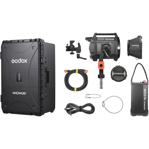 El kit Godox KKnowled MG1200R RGB LED Monolight ofrece una iluminación profesional a todo color con una versatilidad sin igual. Estos dispositivos alimentados por CA ofrecen una amplia gama de colores de 1800 a 10 000 K, control RGB avanzado y una potencia de 21 300 lux a 9,8', y se pueden controlar mediante DMX, CRMX, una aplicación y Ethernet. Está diseñado para cineastas y fotógrafos y está equipado con un reflector de 45°, compatibilidad con la montura G patentada y una carcasa resistente con clasificación IP65, todo ello empaquetado en un maletín rígido de protección para facilitar su transporte.