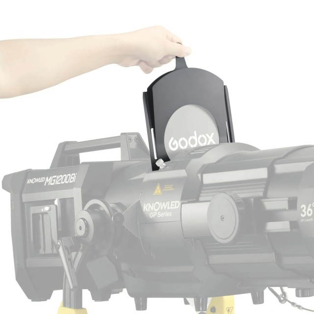 El soporte para gobos Godox GP-CF es un accesorio totalmente metálico diseñado para los accesorios de proyección de la serie Godox GP. Permite insertar y proyectar gobos de 148 mm de diámetro, lo que permite conseguir efectos de iluminación cinematográficos y teatrales con un control preciso del ambiente y la atmósfera.