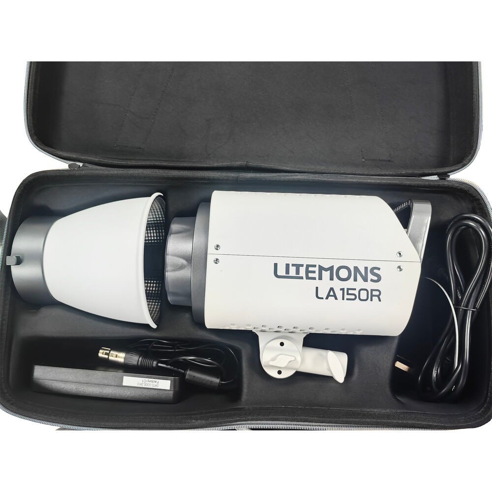 El kit incluye el reflector, un adaptador de corriente y una práctica bolsa de transporte y protección. Otros elementos de seguridad, como la cinta de sujeción y el cable de acero, garantizan una instalación segura. El LA150R es ideal para videógrafos, fotógrafos y creadores de contenido, y ofrece una solución de iluminación versátil adecuada para viajar sin comprometer la calidad ni la funcionalidad.