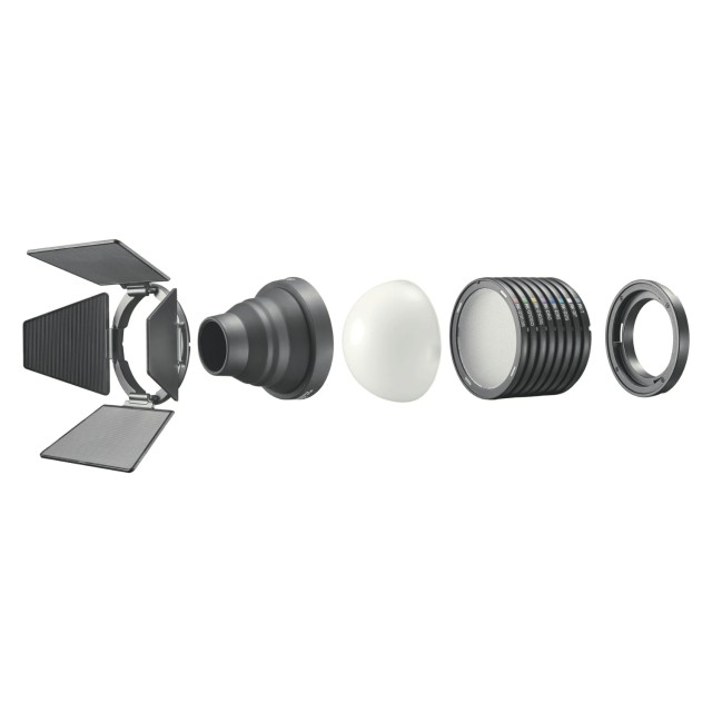 El kit Godox Knowled Magnet Kit MK ofrece un conjunto versátil de modificadores magnéticos para los focos LED cinematográficos MS60Bi y MS60R, que incluye barn doors, un snoot, un difusor en forma de cúpula y una microlente, lo que permite a los operadores de cámara modelar y controlar la luz con precisión.