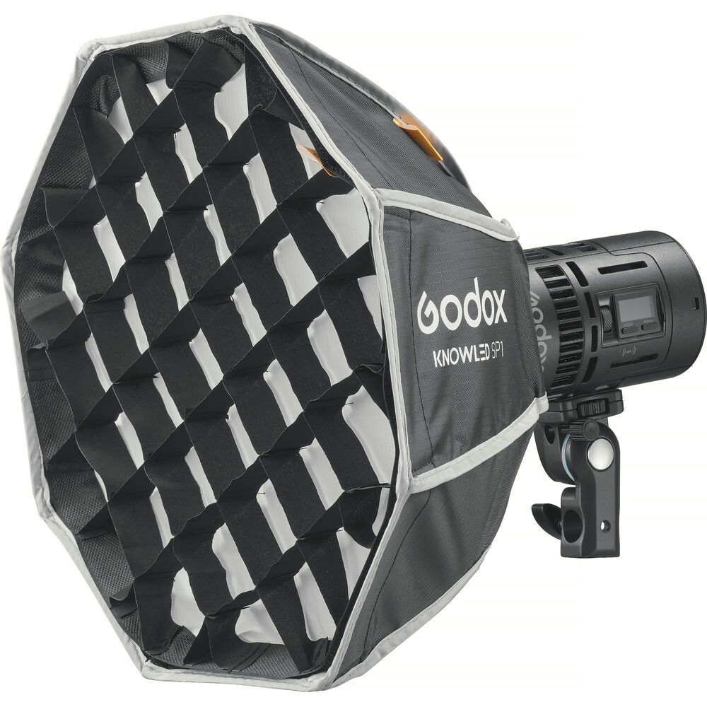 El softbox parabólico Godox Knowled SP1 está diseñado para las luces LED MS60Bi y MS60R y proporciona una iluminación suave y uniforme para la fotografía y la videografía profesionales. Su diseño parabólico de 1 stop garantiza un rendimiento lumínico uniforme, mientras que la rejilla incluida ofrece un control preciso sobre la dispersión y la conformación del haz, lo que lo hace ideal para la iluminación de retratos, productos o de estudio.