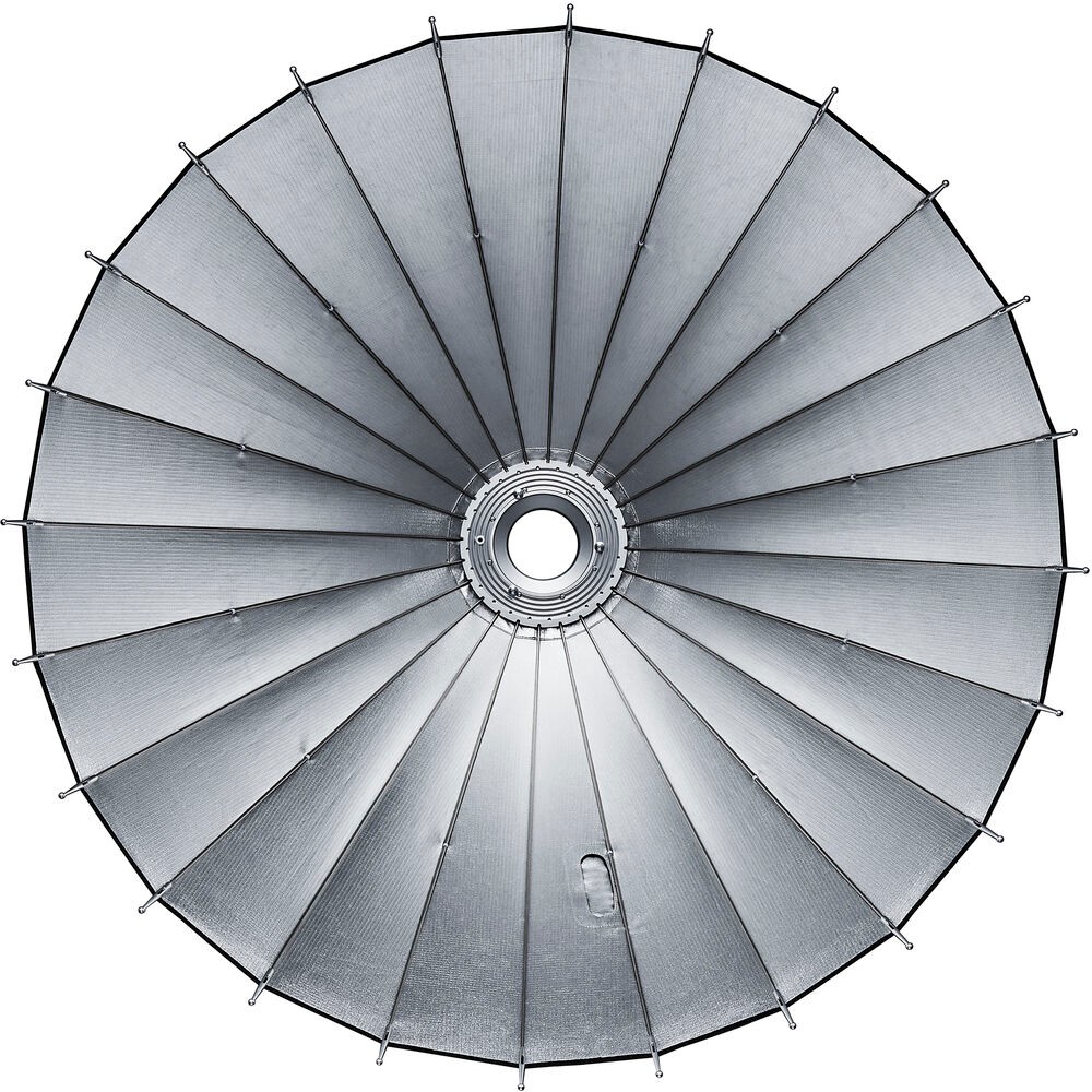 Su reflector interior plateado de 47,2" (120 cm) garantiza la máxima eficiencia lumínica y tonos claros y nítidos, mientras que la superficie exterior negra evita la dispersión indeseada de la luz. El PF-M Focusing Mount y la PF-R870 Focusing Rod te permiten ajustar con precisión la posición de la fuente de luz dentro del reflector, lo que te da un control total sobre la suavidad y la intensidad de la luz.