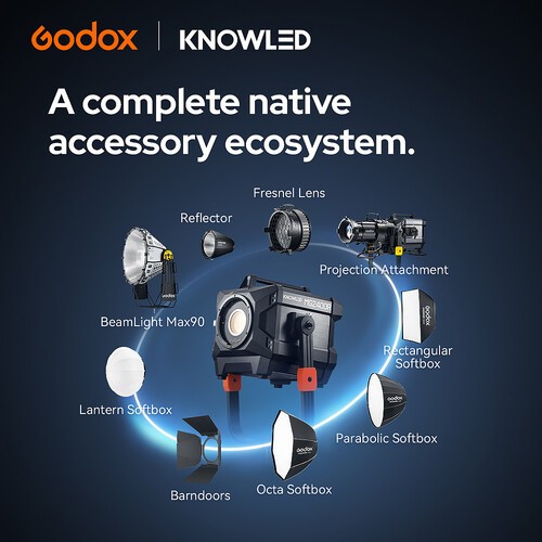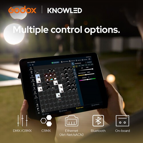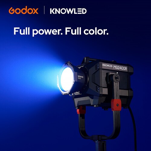 El monofaro LED Godox Knowled MG2400R RGB proporciona un espectrocompleto de iluminación de alto rendimiento para estudios profesionales y producciones cinematográficas y televisivas. Con un ajuste de CCT de 1800 a 10 000 K, modos de color RGB y una estructura resistente con clasificación IP65, este dispositivo alimentado por red de CA ofrece un control preciso del color, varios efectos FX y conectividad avanzada para una iluminación versátil y fiable.