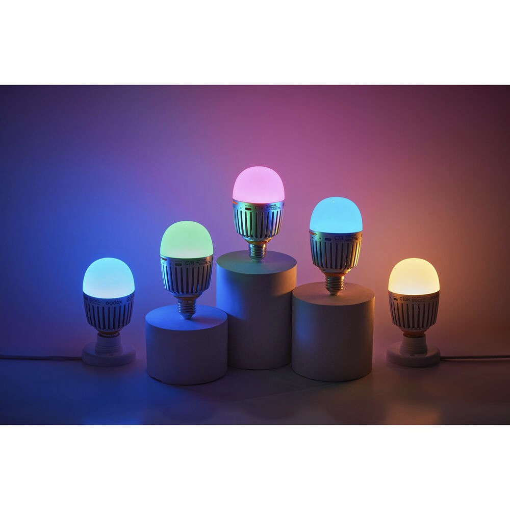 Haz realidad tus ideas creativas con la fuente de luz creativa Godox C7R RGBWW (versión con batería). Esta fuente de luz LED, compacta pero potente, ofrece opciones de alimentación flexibles, incluida una batería integrada para uso portátil o una entrada USB-C para un funcionamiento ininterrumpido. Con una potencia de 101 luxos a 3,3' (5500 K), el C7R proporciona una iluminación sin parpadeos y uniforme en una amplia gama de ajustes de color. Los modos RGB, HSI, gel y selección de colores totalmente ajustables, junto con un rango de CCT de 2000 a 10 000 K, permiten un control preciso del tono, la saturación y la intensidad. La alta fidelidad cromática está garantizada gracias a un CRI de 96 y un TLCI de 98, mientras que la regulación continua de 0 a 100 % se adapta a cualquier escena. La bombilla es compatible con casquillos estándar E26/E27 y ofrece control adicional a través de la aplicación Godox Light App, que permite agrupar dispositivos, regular la intensidad de forma remota y personalizar completamente los colores para un ajuste fluido de la iluminación. Compacta, portátil y fácil de usar, la Godox C7R es una herramienta imprescindible para fotógrafos, cineastas y creadores de contenido.