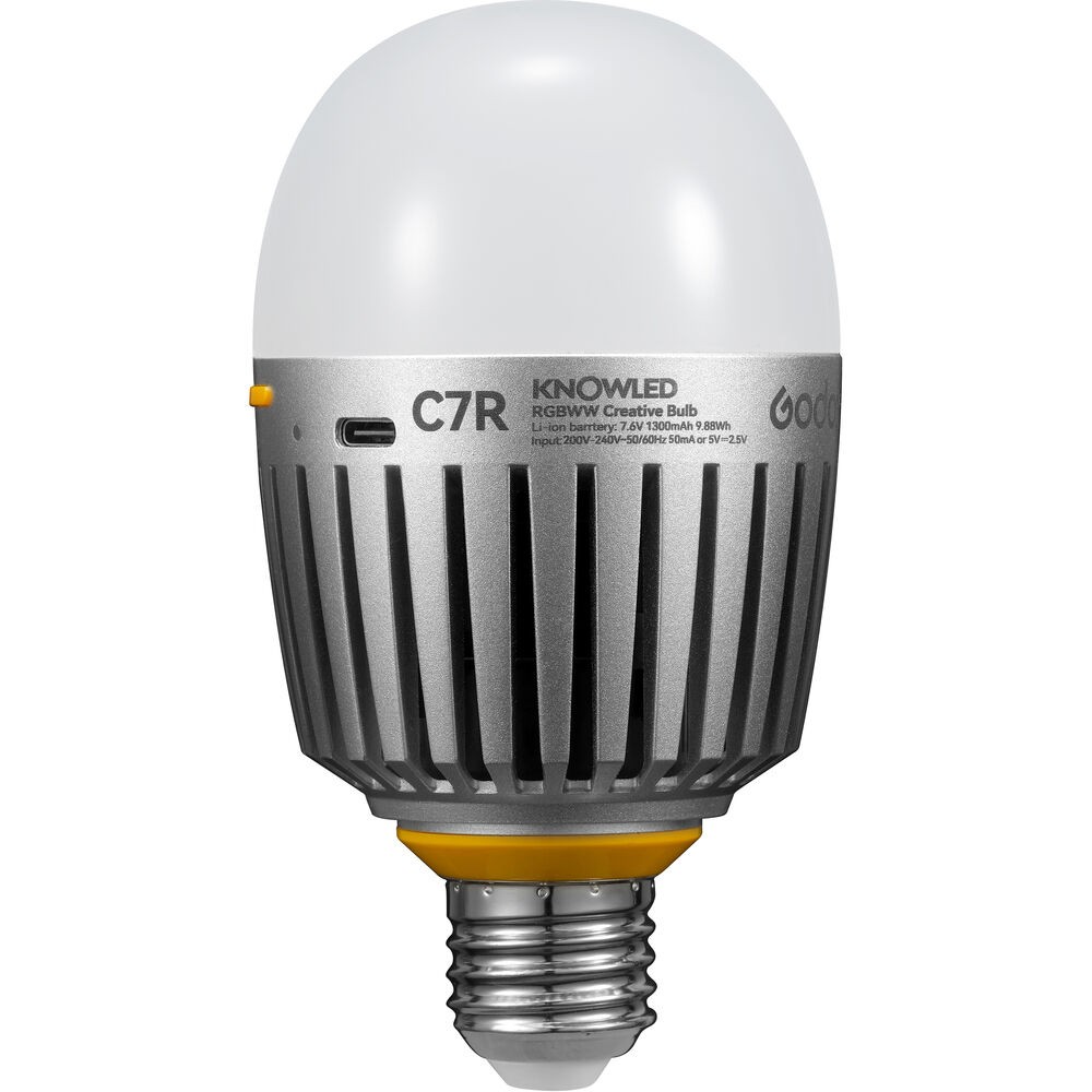 La Godox C7R RGBWW Creative Bulb (versión con batería) es una bombilla LED versátil y totalmente personalizable con batería integrada y alimentación a través de USB-C. Ofrece colores fieles con un CRI de 96 y un TLCI de 98, cuenta con modos RGB, HSI y CCT de 2000 a 10 000 K, regulación continua de la intensidad y control a través de Bluetooth mediante la aplicación Godox Light App, lo que la hace ideal para una iluminación dinámica en cualquier rodaje o proyecto creativo.