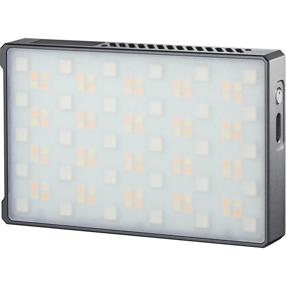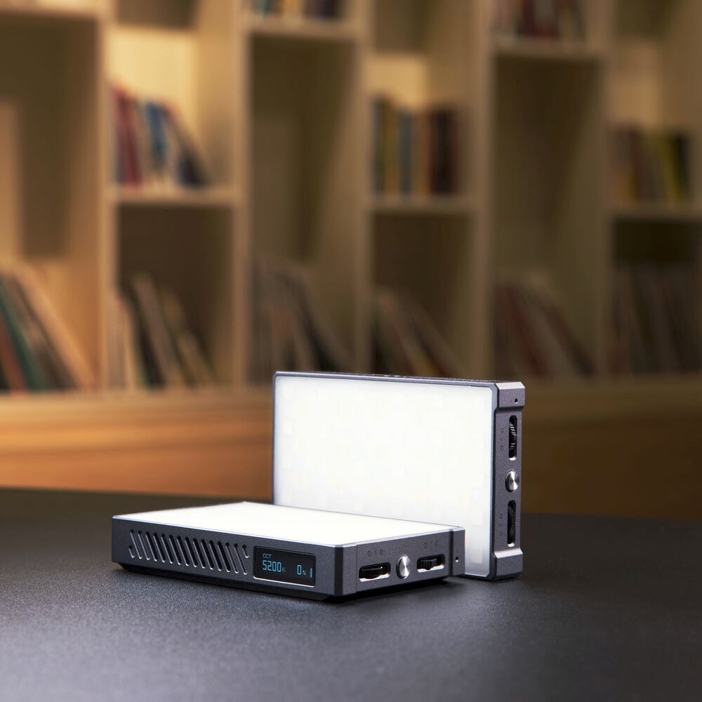 La configuración es flexible gracias a su parte trasera magnética, una base de montaje con zapata fría y una rosca de 1/4"-20 para fijarlo a trípodes o brazos articulados. Compacto y ligero, pesa solo 169 g y mide 10,6 x 6,8 x 1,8 cm, por lo que es ideal para uso manual o montaje en un rig.