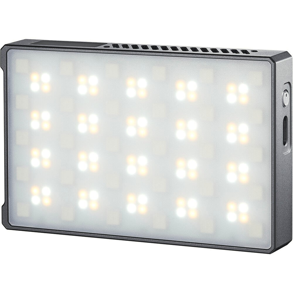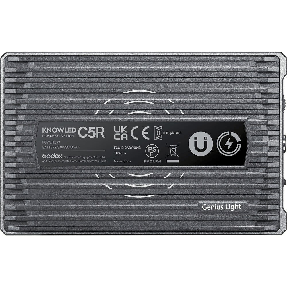 La luz LED Godox Knowled RGBWW C5R es una solución de iluminación compacta y versátil para fotógrafos y videógrafos que buscan un control creativo. Con una temperatura de color ajustable de 2500 a 8500 K, regulación de intensidad entre el 0 % y el 100 % y 39 efectos de luz integrados, esta ligera luz LED ofrece una iluminación de calidad profesional en un diseño portátil. Controla la luz directamente a través del panel LCD integrado o de forma inalámbrica mediante la aplicación Godox Light App, y fíjala con flexibilidad gracias a su parte trasera magnética, su base con zócalo o su rosca de 1/4"-20. La batería integrada de 3000 mAh proporciona hasta dos horas de funcionamiento, lo que resulta ideal para fotografiar mientras viajas.