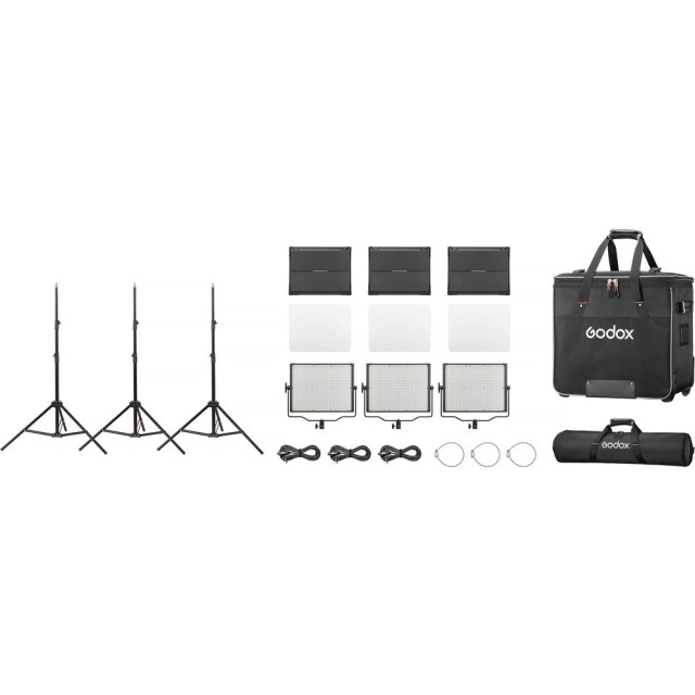 Ilumina tu estudio o sesión fotográfica in situ con el set de 3 paneles LED bicolores Godox Knowled Studio P120Bi. Este kit versátil incluye tres paneles de 18 x 16 pulgadas con temperatura de color ajustable de 3200 a 5600 K, alta precisión CRI 97/TLCI 98 y varias opciones de control, incluyendo control integrado, DMX y control por Bluetooth a través de una aplicación. Ofrece una iluminación brillante, suave y con precisión cromática para fotografía, videografía o retransmisiones. Es ligera, portátil y viene con soportes, difusores y una bolsa de transporte, por lo que es ideal para uso profesional en cualquier lugar.