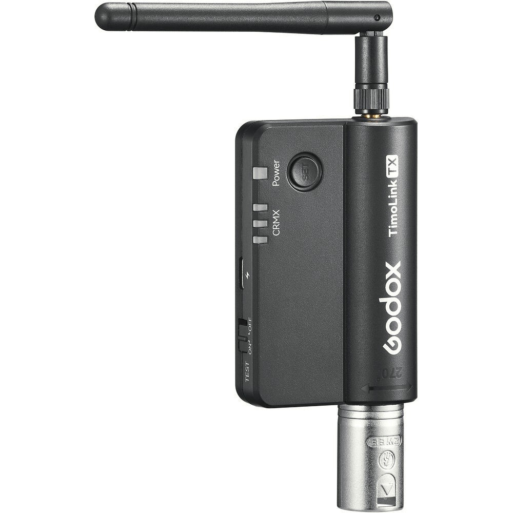 El Godox Knowled TimoLink TX es un transmisor DMX inalámbrico profesional con un módulo LumenRadio CRMX integrado que garantiza una transmisión fiable de la señal a largas distancias de hasta 300 metros. Está diseñado para cineastas, cadenas de televisión y técnicos de iluminación. Convierte cualquier consola DMX con cable en un sistema inalámbrico y ofrece un conector XLR giratorio de 5 pines con un ángulo de giro de 270° para una compatibilidad máxima. Gracias a los botones independientes de configuración/reinicio y a la función de prueba integrada para confirmar la salida DMX, el TimoLink TX proporciona un control eficaz, estable y flexible para los modernos sistemas de iluminación.