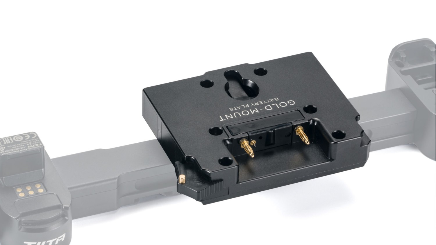 Esta placa para el soporte dorado de las baterías se acopla directamente al soporte de alimentación con doble asa para el RS2 y permite alimentar el cardán con baterías doradas de mayor capacidad sin necesidad de cables externos.