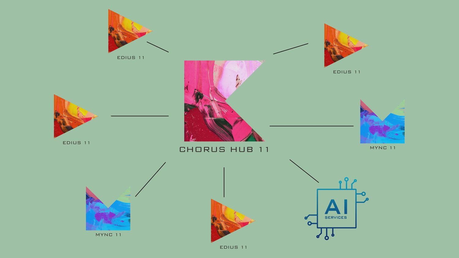 Entre las novedades se incluyen un núcleo del programa actualizado con compatibilidad con las últimas tecnologías de PC y GPU, un nuevo filtro inteligente para correcciones de color, el tipo de clip «Adjustment» para aplicar efectos simultáneamente en varias pistas, reconocimiento de voz basado en inteligencia artificial, un editor de audio especializado que también admite la conversión automática de voz a texto y un generador de subtítulos modernizado y potente. La tecnología Chorus Hub 11 Server, de nuevo desarrollo, permite la colaboración en equipo mediante la conexión de varios clientes EDIUS 11, el motor de renderizado XRE, la herramienta Mync 11 y el almacenamiento en servidor. Gracias a las herramientas de desarrollo incluidas, también permite integrar servicios de IA (etiquetado automático de vídeos y fotografías, control de calidad, etc.).
