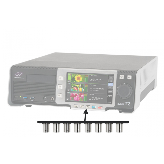 Accesorio opcional para los grabadores/reproductores de disco Grass Valley T2 iDDR 4K con interfaz 8x SDI que permite la conexión simultánea de entradas y salidas en modo Quad-Link SDI. Es necesario solicitarlo junto con el grabador.