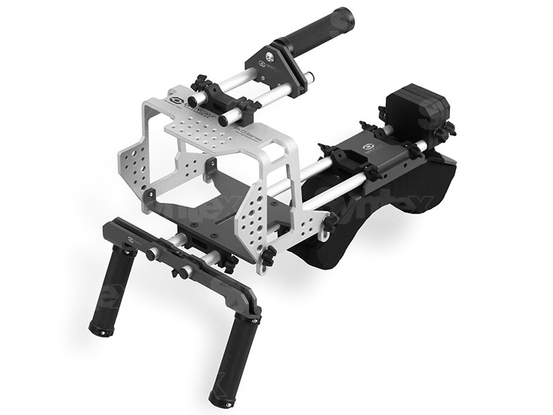 Kit básico de jaula para cámara y otros accesorios de montaje para las cámaras Blackmagic Cinema Camera y Blackmagic Production Camera 4K. Incluye la jaula para cámara, el soporte superior, el soporte para el hombro con asas, los juegos de barras de montaje superior e inferior y cuatro contrapesos. Fabricación sólida, excelente relación calidad-precio.