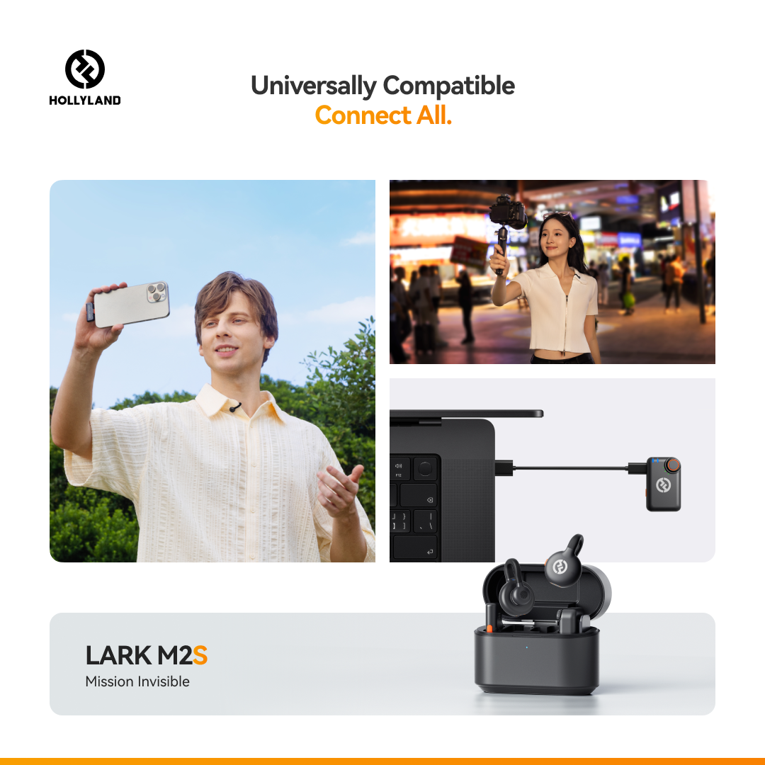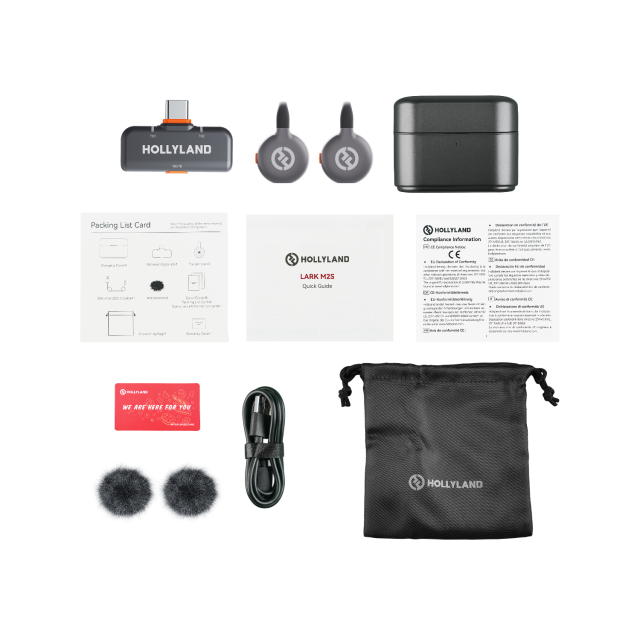 El micrófono inalámbrico Hollyland LARK M2S Duo con conector USB-C ofrece una calidad de sonido profesional con funciones avanzadas, como grabación a 48 kHz/24 bits, supresión de ruido y un alcance inalámbrico de 300 m. Está diseñado para creadores móviles y garantiza una compatibilidad universal y un rendimiento sin problemas.