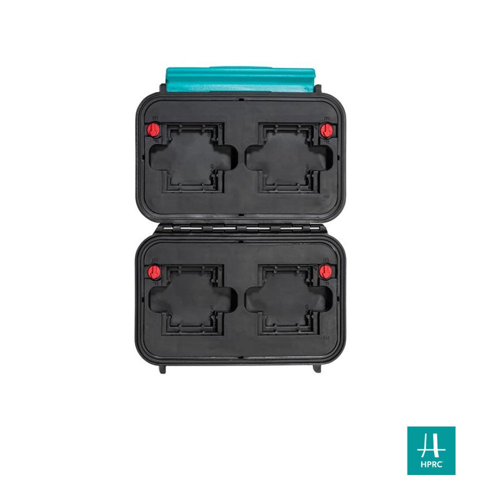 La maleta HPRC 1300 es resistente a los golpes, impermeable y está disponible con relleno interior de cubos de espuma o con soportes para tarjetas.