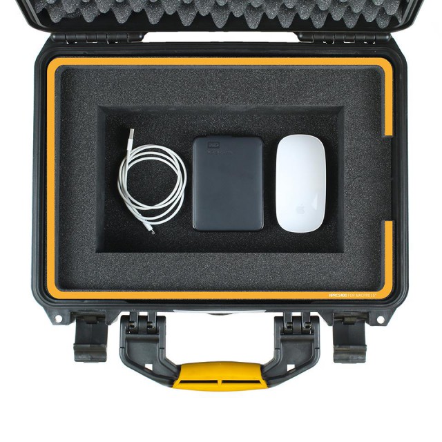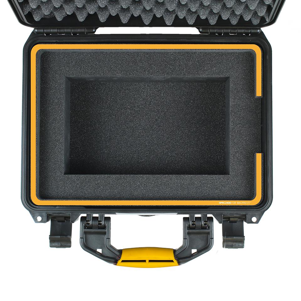 La HPRC 2400 para MacBook Pro de 15" es una funda ligera, resistente a los golpes e impermeable, diseñada específicamente para transportar y proteger el portátil MacBook Pro de 15" y sus accesorios