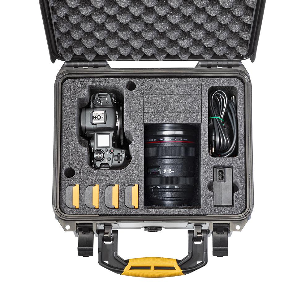 Funda rígida altamente resistente e impermeable para transportar la cámara Canon EOS R5 / R6 a cualquier lugar y en cualquier condición meteorológica.