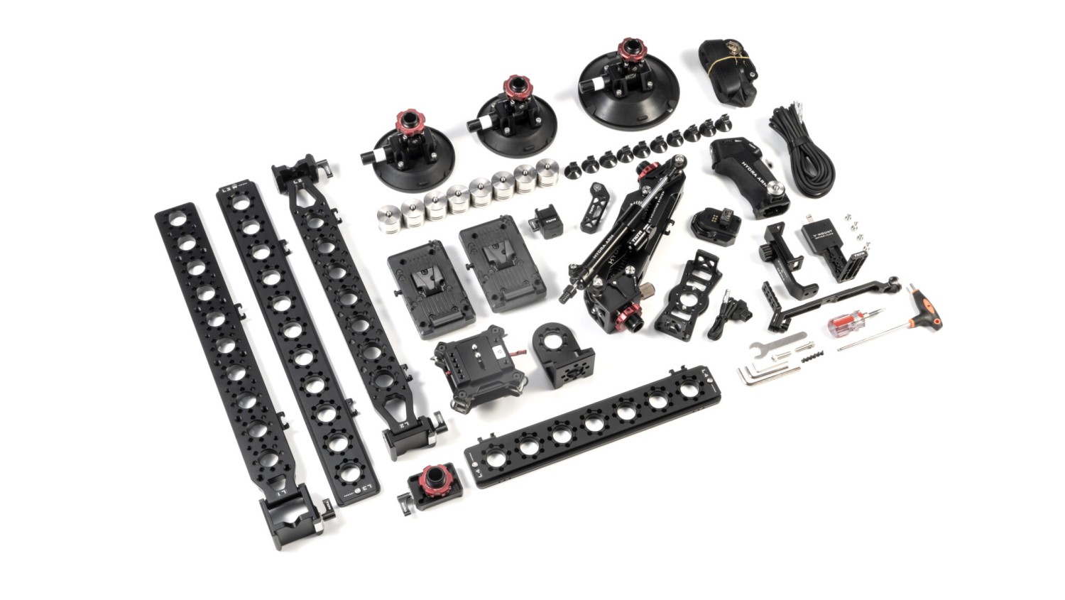 El kit Pro Kit incluye el sistema de montaje Hydra Alien Car Mounting System, un juego de mandos a distancia para el RS2 y un soporte para monitor Hydra Alien.
