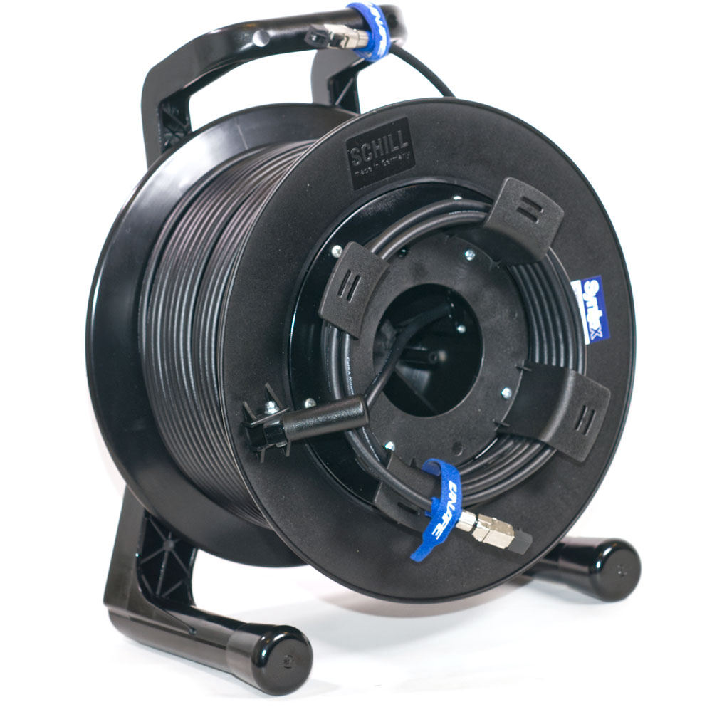Cable flexible CAT6A STP de 23 AWG con un diámetro exterior de 8,6 mm y conectores Telegartner RJ45, enrollado en un carrete Schill GT 310.RM. Los cables Ethernet se utilizan no solo para redes informáticas, sino también, últimamente, para redes de audio digital, cámaras en red y transmisiones HDBaseT. La longitud total del cable se indica incluyendo los conectores.