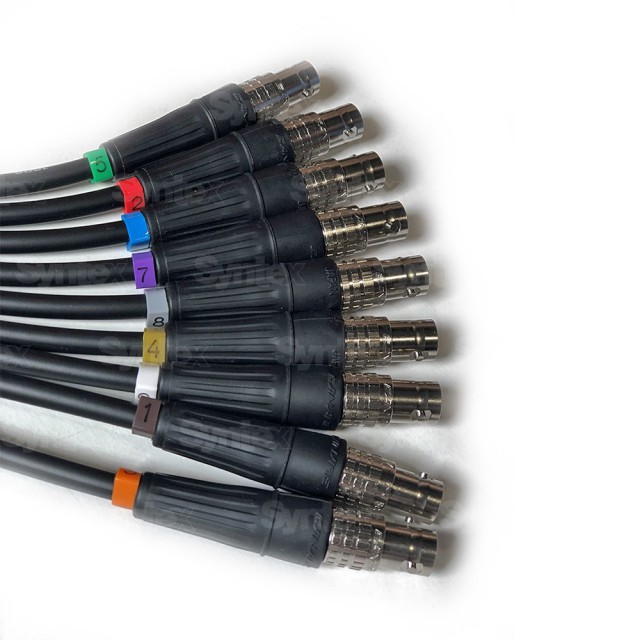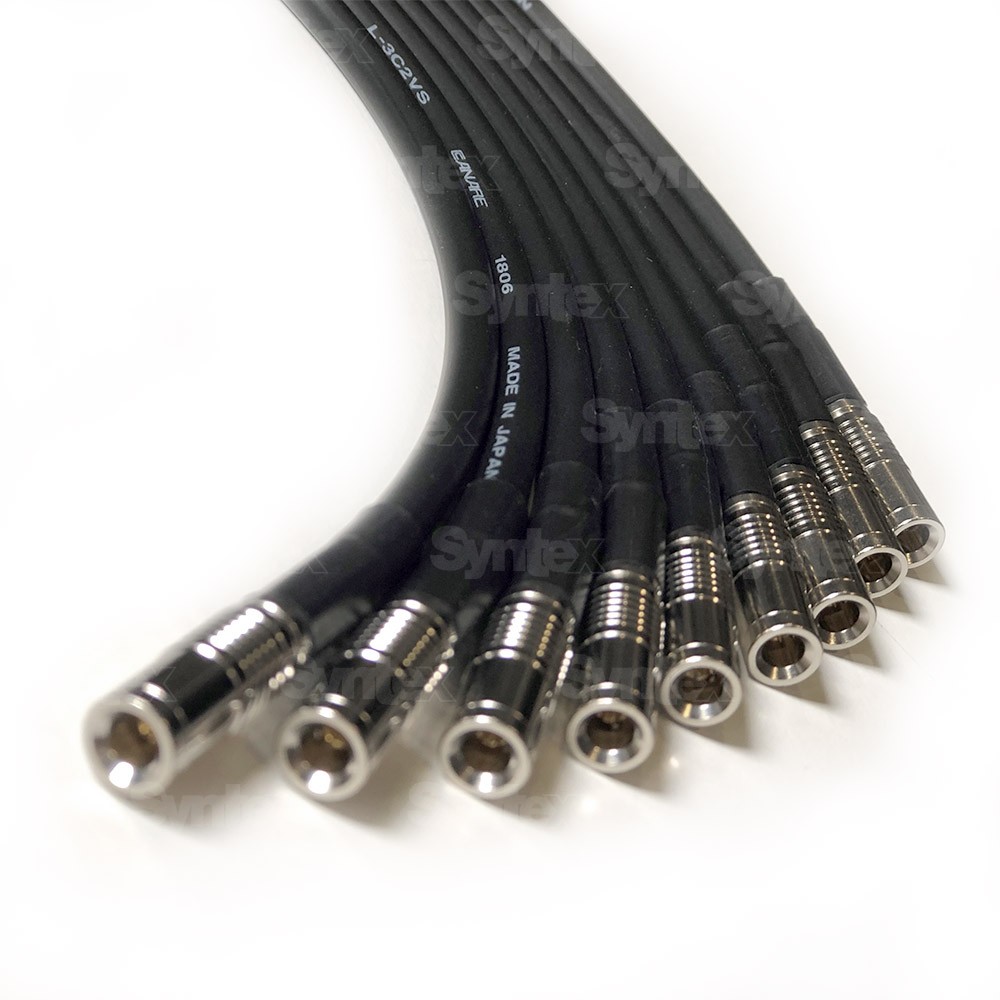 El juego de cables está fabricado con cable coaxial flexible de alta calidad, conectores DIN 1.0/2.3 y BNC (hembra) del fabricante japonés Canare.