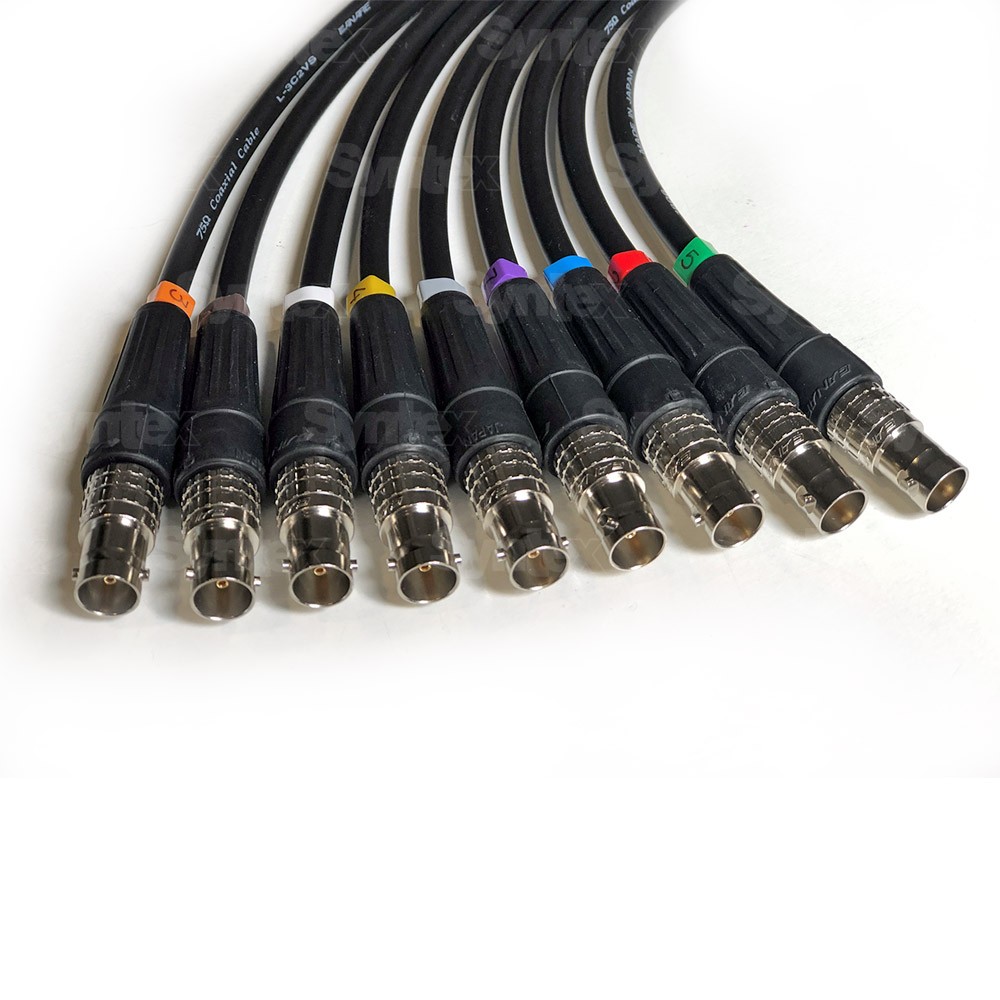 Juego de 9 cables de conexión para tarjetas Blackmagic Design DeckLink Quad. Longitud del cable: 0,3 m; conectores BNC tipo F (hembra)