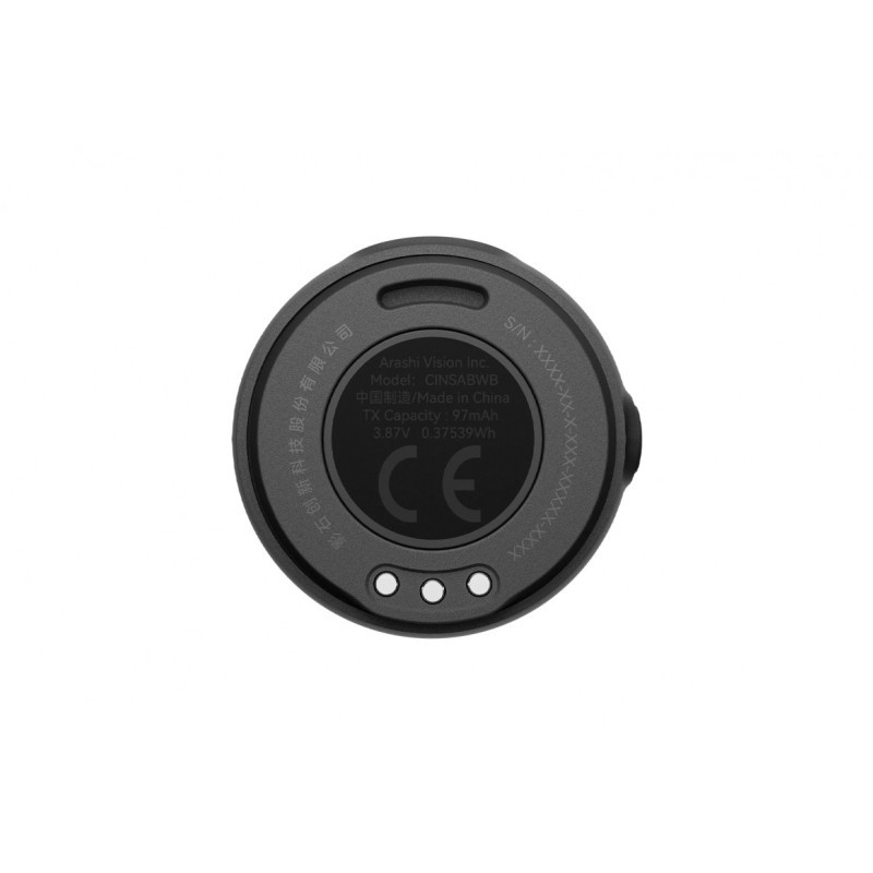 El Insta360 Mic Air Transmitter es un micrófono inalámbrico ultraligero que pesa 7,9 g y mide 2,7 cm x 1,2 cm, con grabación a 48 kHz/24 bits. Ofrece supresión activa de ruido, un alcance de 30 a 50 m y una autonomía de hasta 7,5 horas. Se fija mediante imán, clip o gancho. Conexión inalámbrica a las cámaras Insta360 (X5/X4, Ace Pro 2) sin necesidad de receptor. El cuerpo del micrófono cuenta con botones para el apagado, la supresión de ruido y el silenciamiento. Carga a través de USB-C.